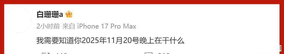 她还特意跟吴磊打招呼,说她想知道2025年11月20日晚上他到底在忙啥。之前有消息爆料,说那天吴磊是在澳门玩耍。
