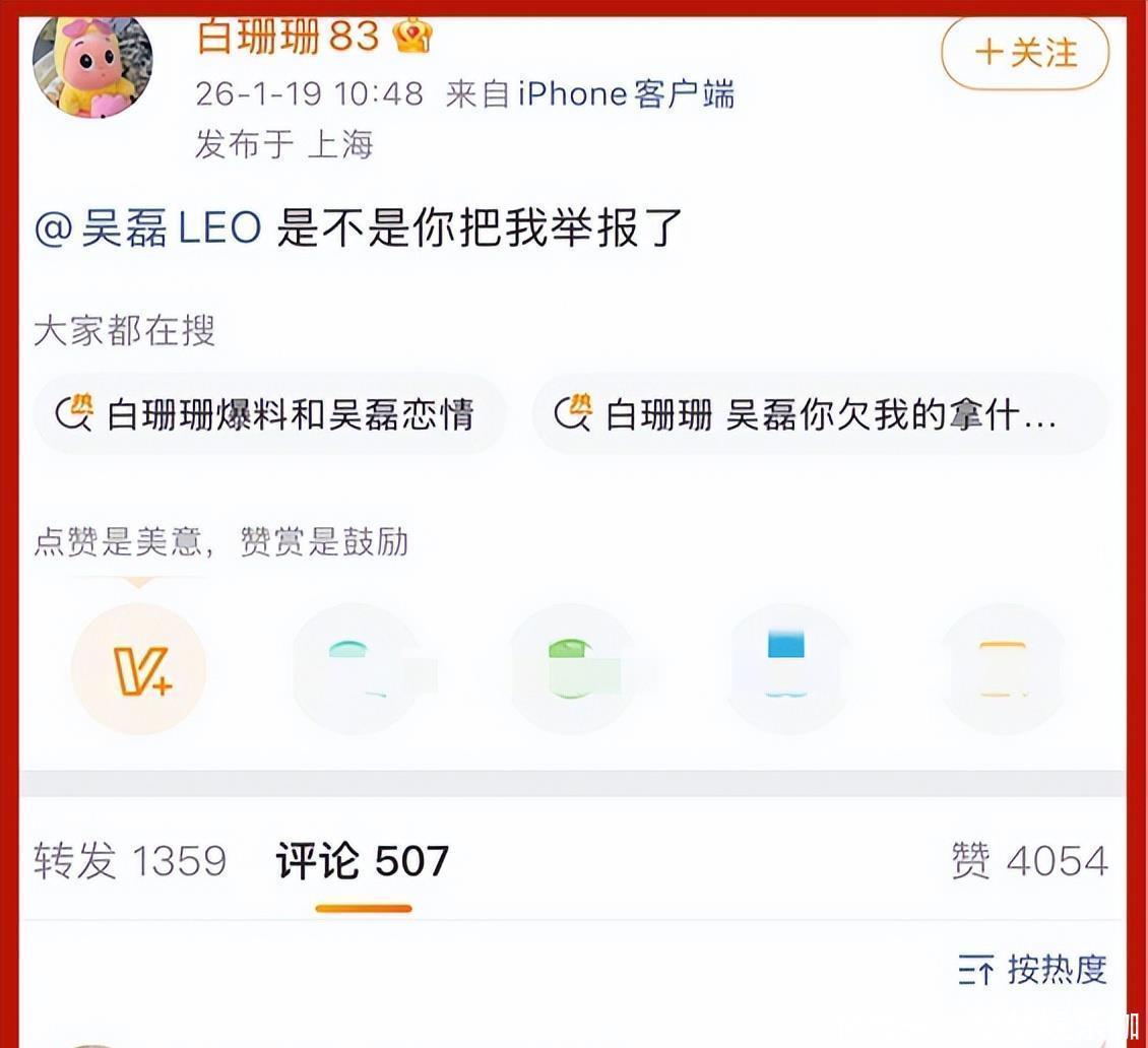 吴磊工作室一出声明,澄清了那些传闻都是扯淡,完全没根据。没想到的是,一波未平,一波又起,另有趣事接着发生了。白珊珊艾特了吴磊的账号,还挺直接地问他,是不是他把自己举报了?